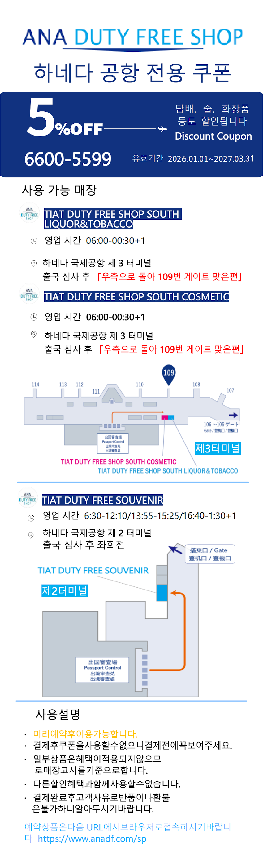 ANA DUTY FREE SHOP은 하네다 공항 국제선 터미널에 위치한 면세점으로, 출국 전에 편안하게 쇼핑을 즐길 수 있는 매장입니다. 화장품과 향수, 주류, 담배, 일본 인기 기념품, 브랜드 잡화 등 다양한 상품을 갖추고 있어 여행 전 쇼핑에 매우 편리합니다.