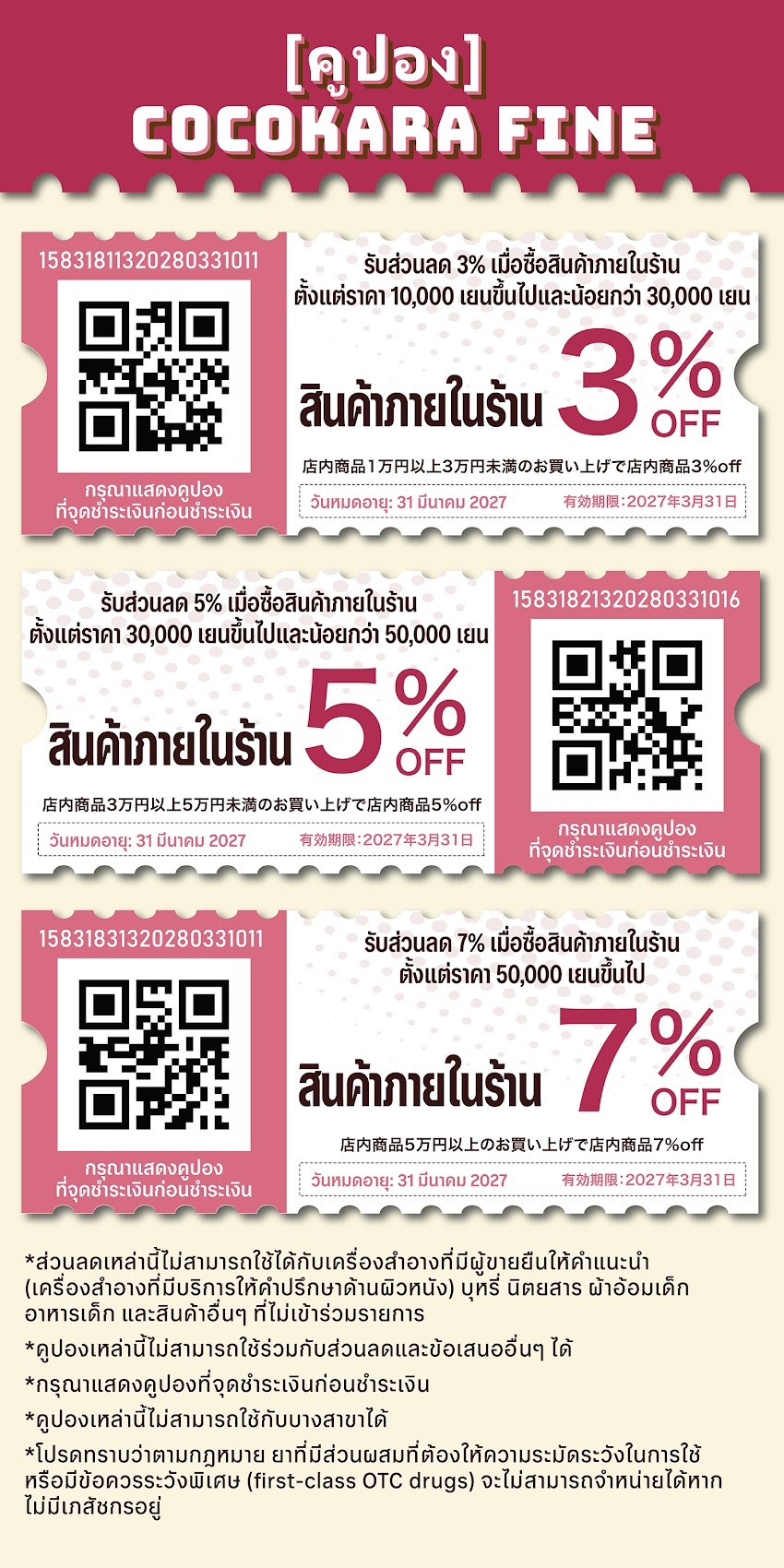 รายละเอียดและระยะเวลาการใช้คูปอง อาจมีการเปลี่ยนแปลงหรือการระงับการใช้โดยไม่มีการแจ้งล่วงหน้า