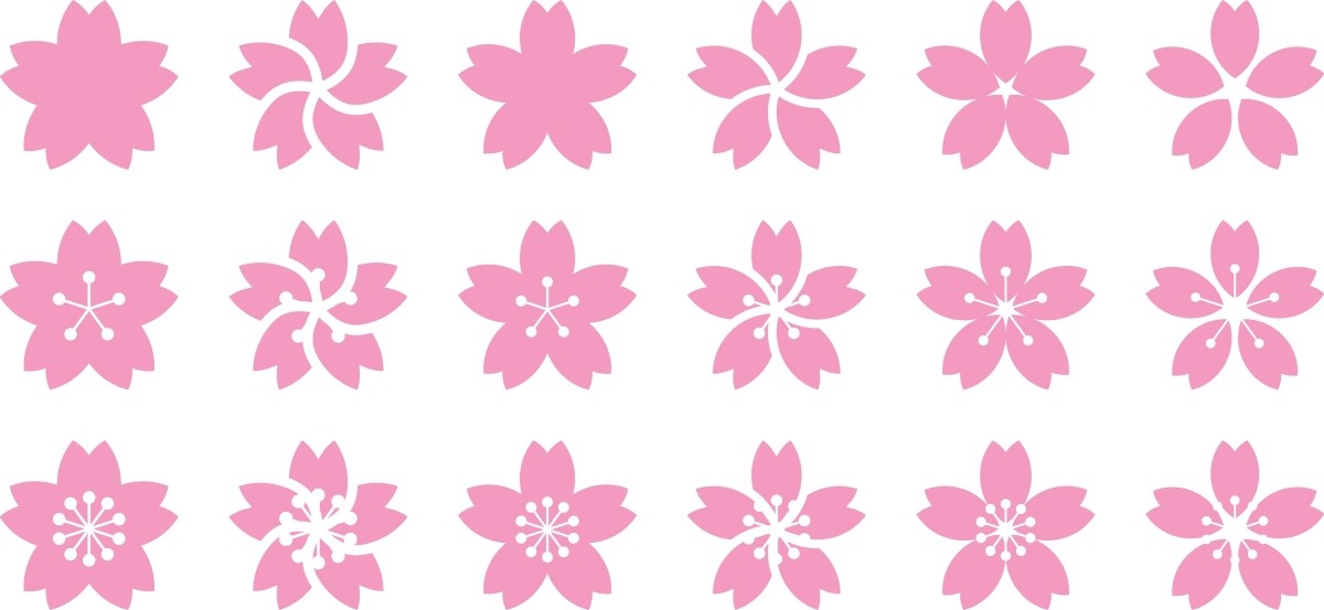 This is a general term for designs featuring cherry blossoms, including five-petaled flowers, scattered petals, and weeping cherry branches. The pattern strongly evokes the season, and is often set against pale pink, light cherry, or white backgrounds. Gold and silver foil or embroidery are also used to enhance its beauty.