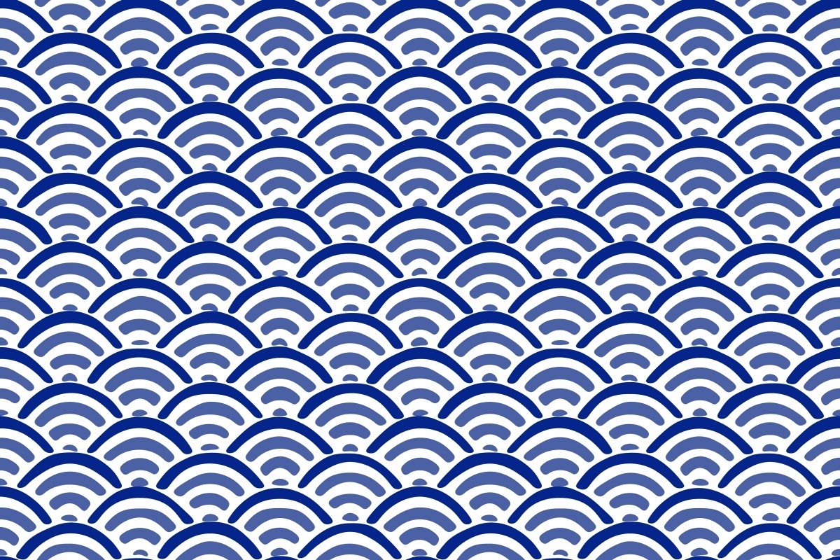 Seigaiha is a geometric pattern made up of concentric semicircles arranged in a wave-like horizontal sequence. The regular overlapping arches create a wave motif.
