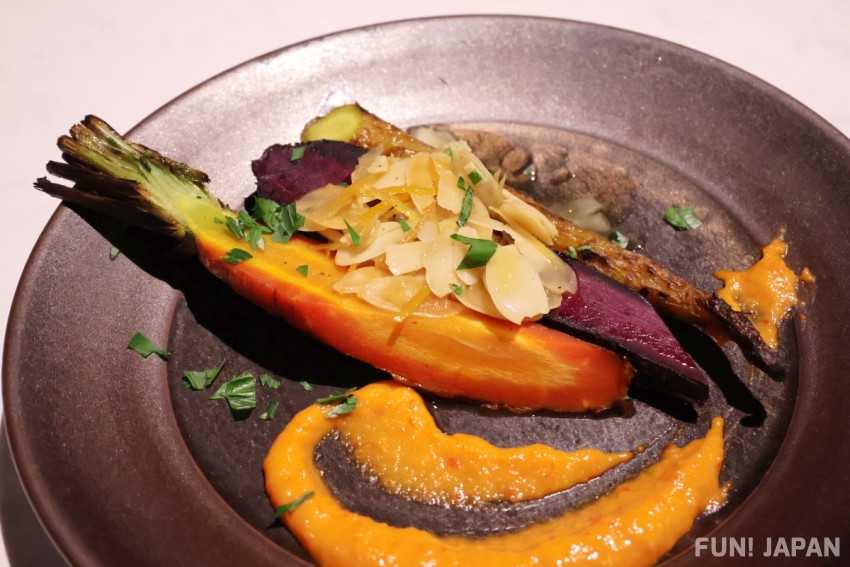 Stone Oven-Baked "Roasted Carrot with Romesco and Almond Sauce"