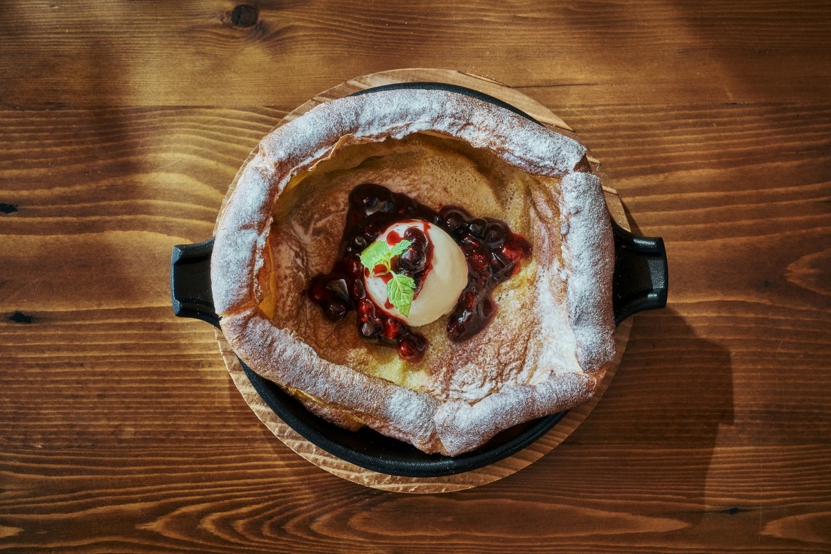 At FUDO, you can enjoy not only some of the most popular fresh pastries from Happo-en Patisserie, but also FUDO-exclusive parfaits and oven-baked German-style pancakes known as "Dutch Baby."