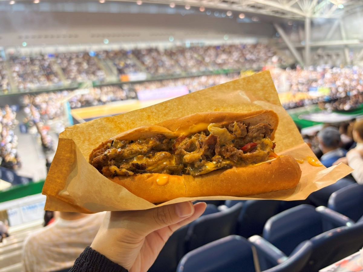 The highlight is the “Cheesesteak” for 1,000 yen. Juicy meat is sandwiched in hot bread and topped with melty cheese—perfect as a one-handed snack for watching the game!