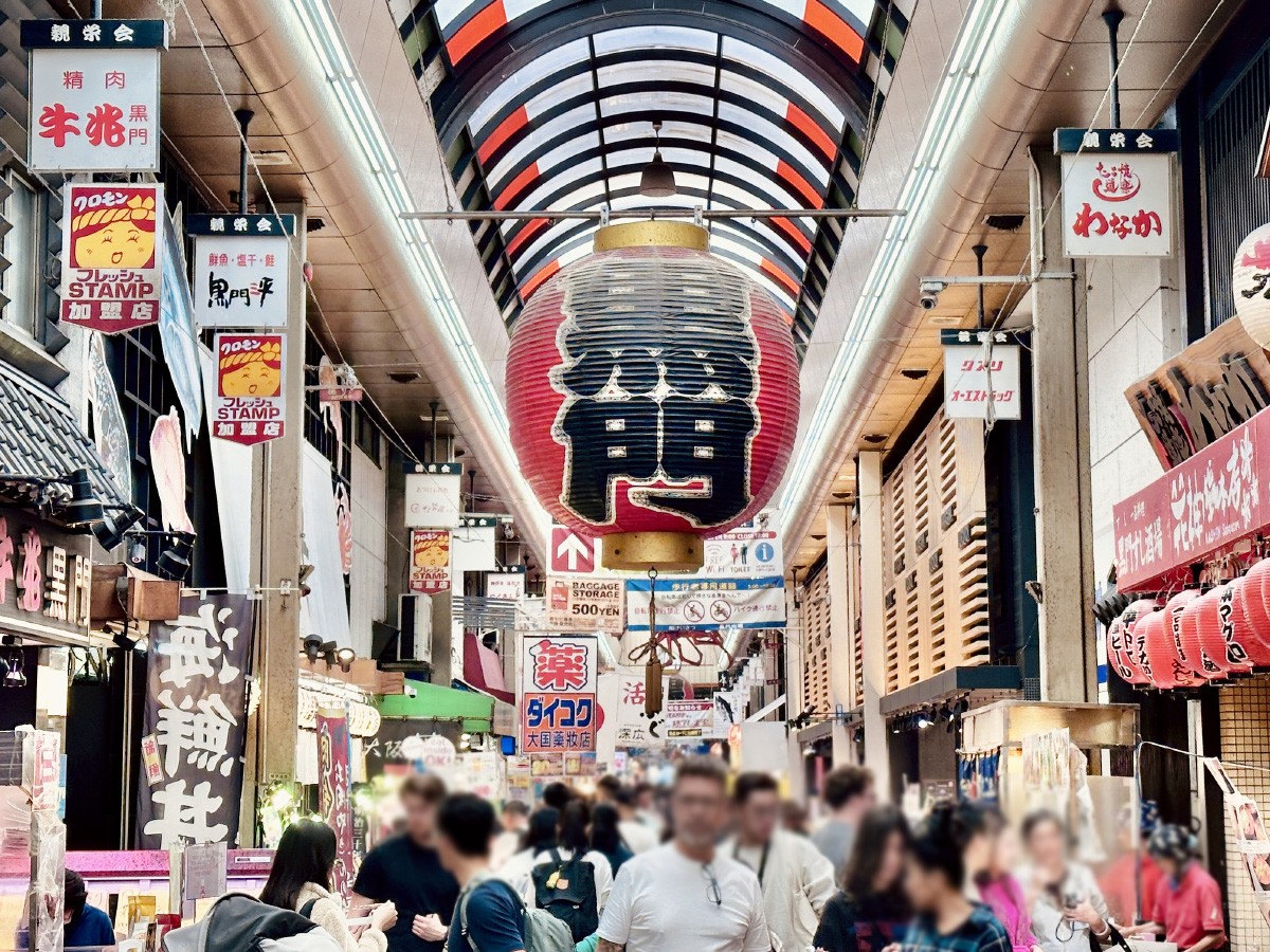 For a taste of authentic Osaka, head to Kuromon Market, just a 10-minute walk from the Dotonbori area. Known as “Osaka’s kitchen,” this lively market is home to a huge variety of shops, including fresh seafood and sushi, wagyu beef, dried goods, sweets, supermarkets, and even drugstores. The air is filled with the mouthwatering scent of grilled skewers and sizzling seafood, making it hard to walk through without stopping for a bite.