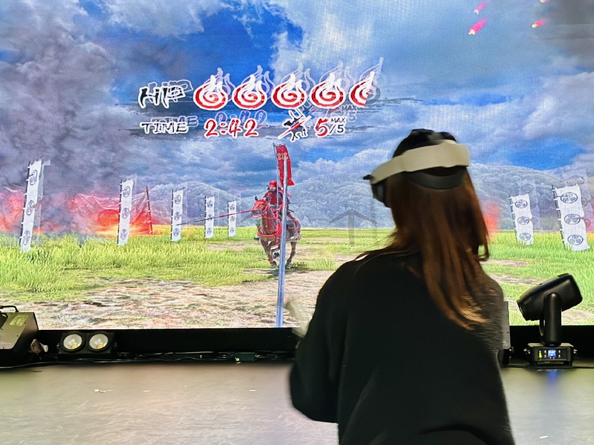 One of the most popular experiences is the “VS Sanada Yukimura” VR game. Strap on a head-mounted display, grab the controller shaped like a sword, and you’ll find yourself transported straight to a Sengoku-era battlefield. Enemies charge from every direction, arrows fly through the air, and it’s up to you to dodge, block, and strike back. The final challenge? A one-on-one showdown with the legendary warlord, Sanada Yukimura. With smooth visuals and impressively realistic motion tracking, the sensation of swinging and defending with a sword feels incredibly lifelike. It’s a full-body experience that draws in both kids and adults alike. (Recommended for ages 10 and up.)