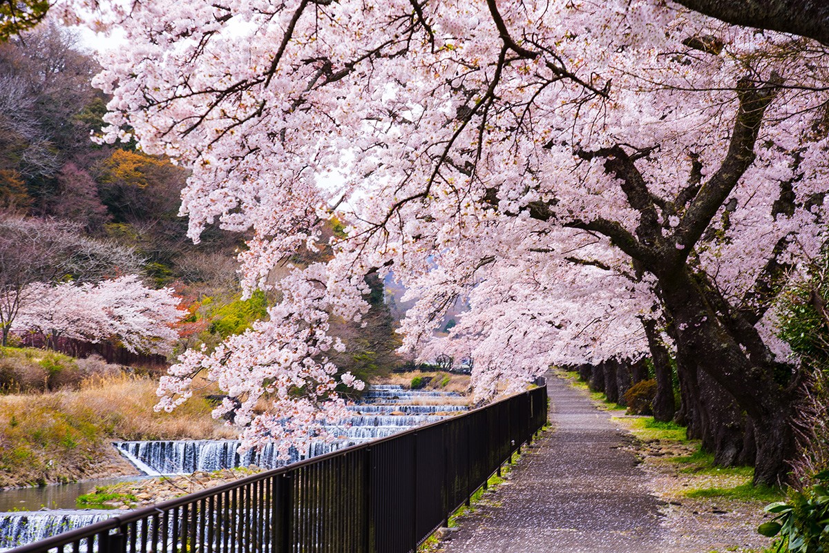 Kawazu-zakura is one of the earliest blooming cherry blossoms in Japan, known for its deep pink color. At Kawazu Onsen, about 850 Kawazu-zakura trees line a 4 km stretch along the Kawazu River, and around 8,000 cherry trees bloom throughout the town. During the "Kawazu Cherry Blossom Festival," about one million people visit. In the Shimoda Onsen area, you can also enjoy Kawazu-zakura at places like Shimoda Park, where the combination of historic streets—famous for the arrival of the Black Ships—and cherry blossoms is especially charming.