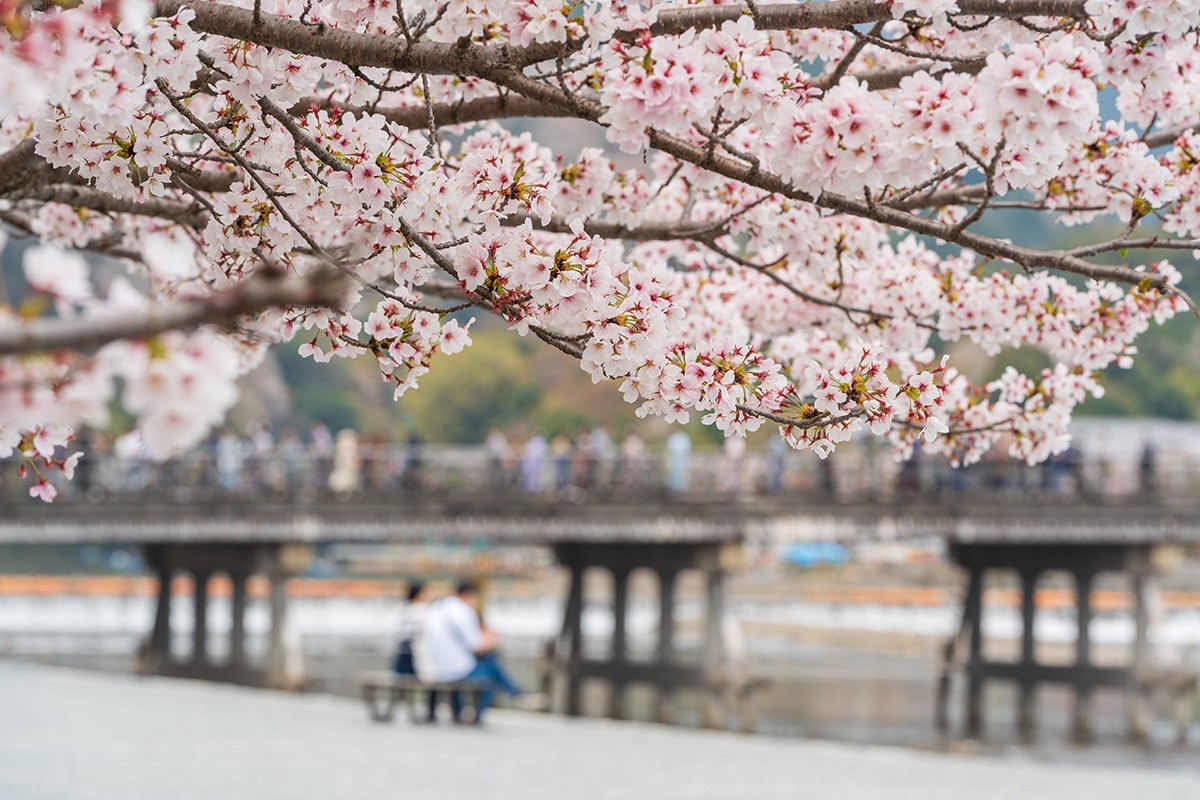 Arashiyama is one of Kyoto’s most famous sightseeing spots, where around 1,500 cherry trees bloom around the Togetsukyo Bridge and Arashiyama Park. The scenery created by the Togetsukyo Bridge, cherry blossoms, and the backdrop of Arashiyama is an iconic image of Japan. Don’t miss the cherry blossoms in the gardens of Tenryu-ji Temple or the cherry blossom tunnel seen from the Sagano Scenic Railway.
