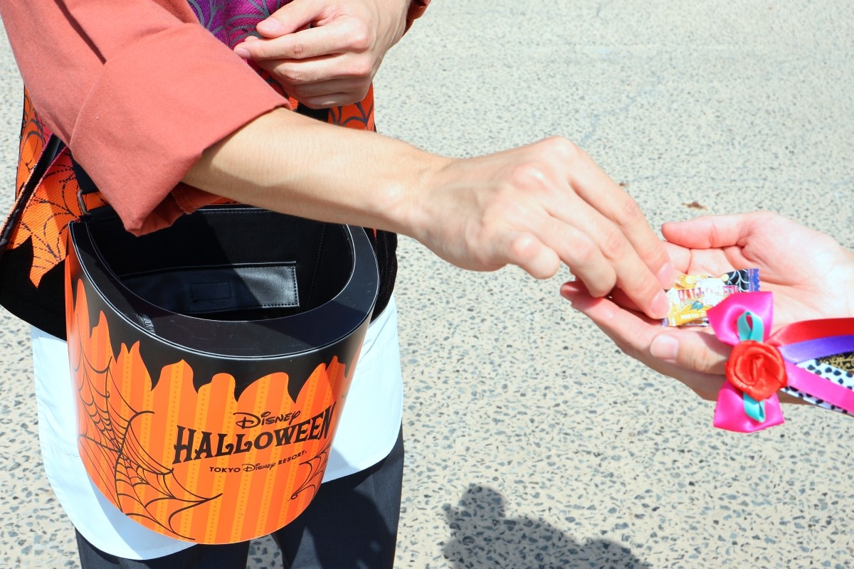 Di sekitar Mediterranean Harbor, Tokyo DisneySea, coba ucapkan "Trick or Treat!" kepada Cast Member yang membawa ember khusus. Kamu akan mendapatkan permen orisinal.
