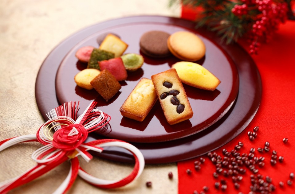 Financier yang terinspirasi dari "Ebisu" ini adalah manisan mewah yang dihiasi dengan "kacang azuki Dainagon" pembawa keberuntungan dan dipanggang hingga sempurna. Kacang azuki Dainagon dianggap membawa keberuntungan karena tidak pecah meski direbus, dan warna merahnya dipercaya dapat menangkal kejahatan, sehingga sejak zaman dahulu menjadi makanan pembawa keberuntungan.