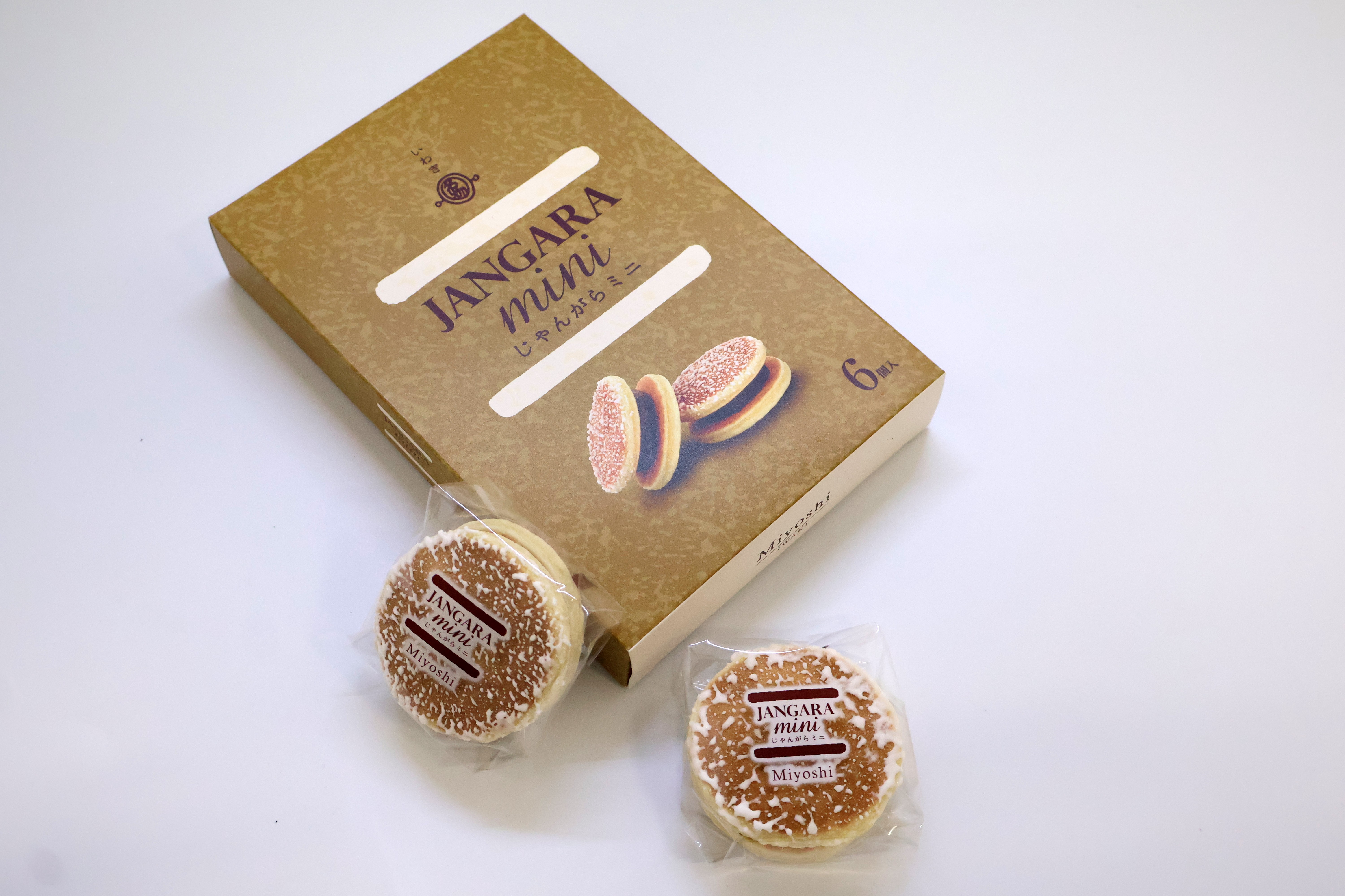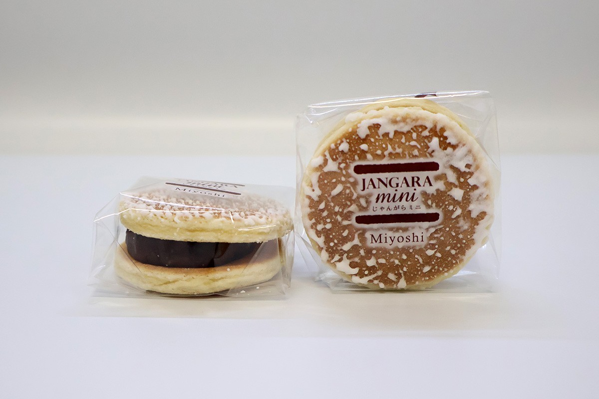 "JANGARA mini" adalah kue khas yang namanya diambil dari seni pertunjukan tradisional "Jangara Nenbutsu Odori" yang diwariskan di Kota Iwaki. Kue ini menggunakan pasta kacang merah Ogura spesial yang dibuat dengan hati-hati dari kacang azuki langka asal Hokkaido, "Shumari". Ciri khasnya adalah adonan kulit yang dipanggang tanpa menggunakan air sama sekali, hanya dengan telur dan susu, lalu diisi dengan pasta kacang merah Ogura. Tekstur kulit yang renyah dan rasa manis elegan dari pasta kacang merah Ogura berpadu sempurna, menciptakan cita rasa yang tak terlupakan setelah sekali mencicipinya.