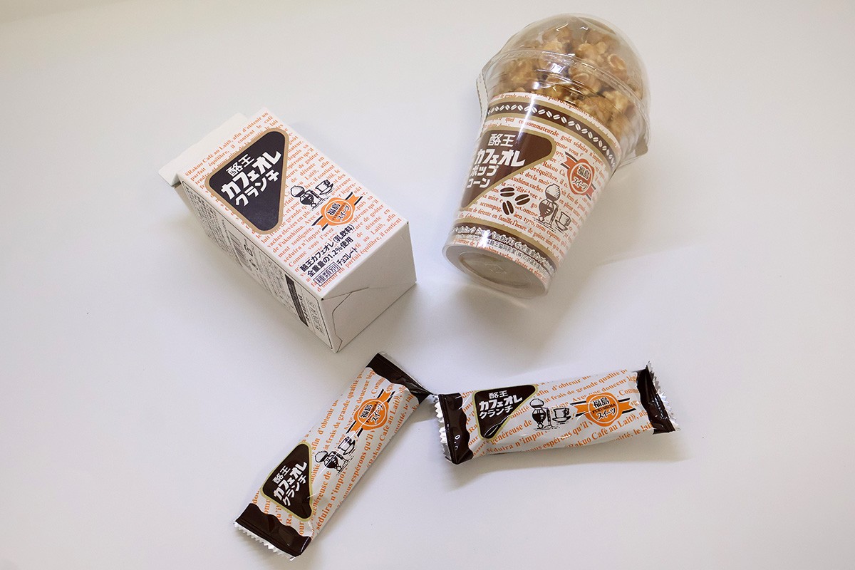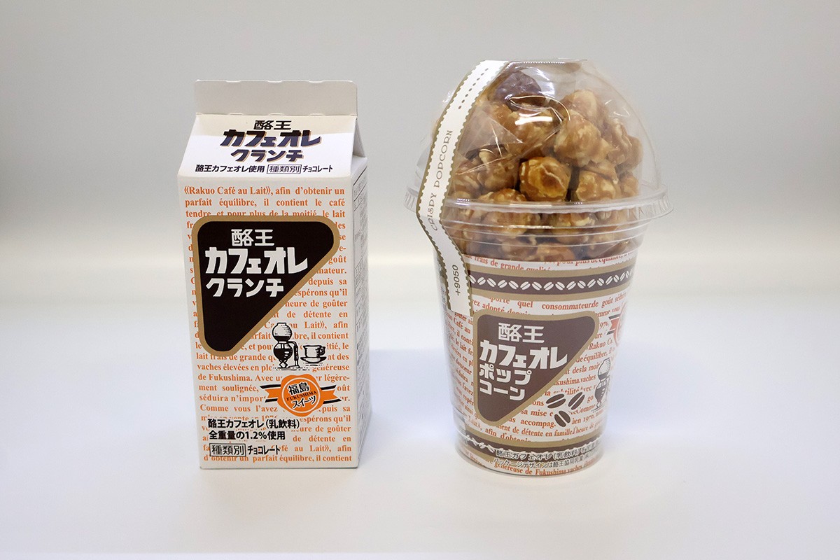 Produk unik yang mengubah "Rakuou Cafe au Lait", minuman khas dari Prefektur Fukushima, menjadi camilan manis.