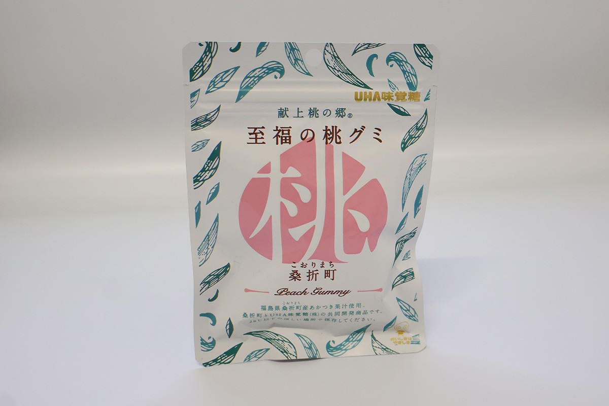 "Shifuku no Momo Gummy" adalah permen gummy yang mengunci kelezatan buah persik Fukushima. Mudah ditemukan di beberapa minimarket dan toko oleh-oleh, sehingga cocok juga untuk oleh-oleh kecil.