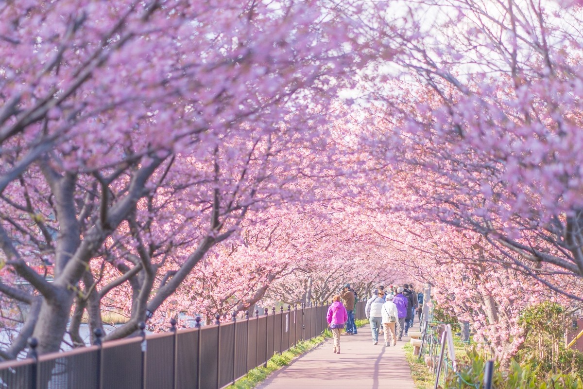 Kota Kawazu adalah tempat asal "Kawazu-zakura", jenis bunga sakura yang terkenal karena mekarnya lebih awal. Ini adalah salah satu tempat di Honshu di mana kamu dapat menikmati bunga sakura lebih awal dari biasanya. Ciri khasnya adalah bunga berwarna merah muda pekat, menciptakan pemandangan yang lebih meriah dan berbeda dari Somei Yoshino pada umumnya. Di sepanjang Sungai Kawazu, sekitar 850 pohon Kawazu-zakura bermekaran, dan di seluruh kota terdapat sekitar 8.000 pohon sakura yang bisa dinikmati, menjadi daya tarik utama kawasan ini.