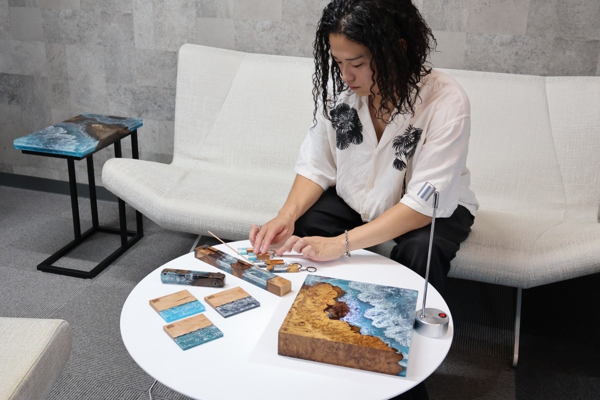 はい。レジンを流し込んだ瞬間に色や形が完全に固定されるので、やり直しがきかないんです。しかも、ほんの小さな傷を見逃すだけで、最後に全体が曇ってしまうこともある。だから、“デザイン”と“職人”の両方の目線を切り替えながら作品作りに向き合う必要があるんです。