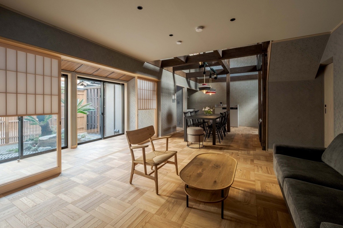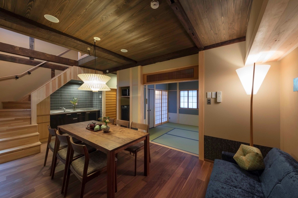 하루 한 팀만 이용할 수 있는 형태로, 마치야 한 채를 통째로 빌려 프라이빗하게 머물 수 있습니다. 주방과 세탁기 등도 갖추고 있어 실제로 거주하는 듯한 체험이 가능합니다. 완전한 개인 공간이기 때문에 가족 여행이나 단체 여행에 적합합니다.