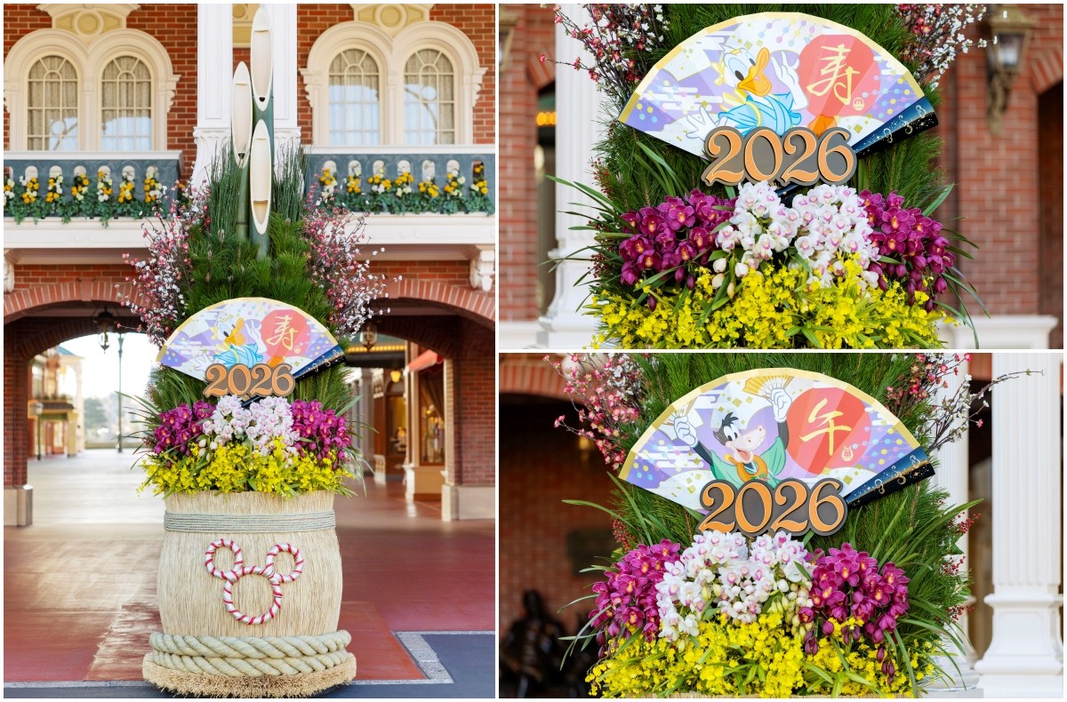 파크 입구에는 설날 분위기를 연출하는 카도마츠 장식이 설치됩니다. 2026년 십이지인 말의 해를 기념하여, 디자인에는 미키 마우스와 디즈니 단편 영화 「The Band Concert」에 등장하는 호레이스 호스칼라가 등장합니다.