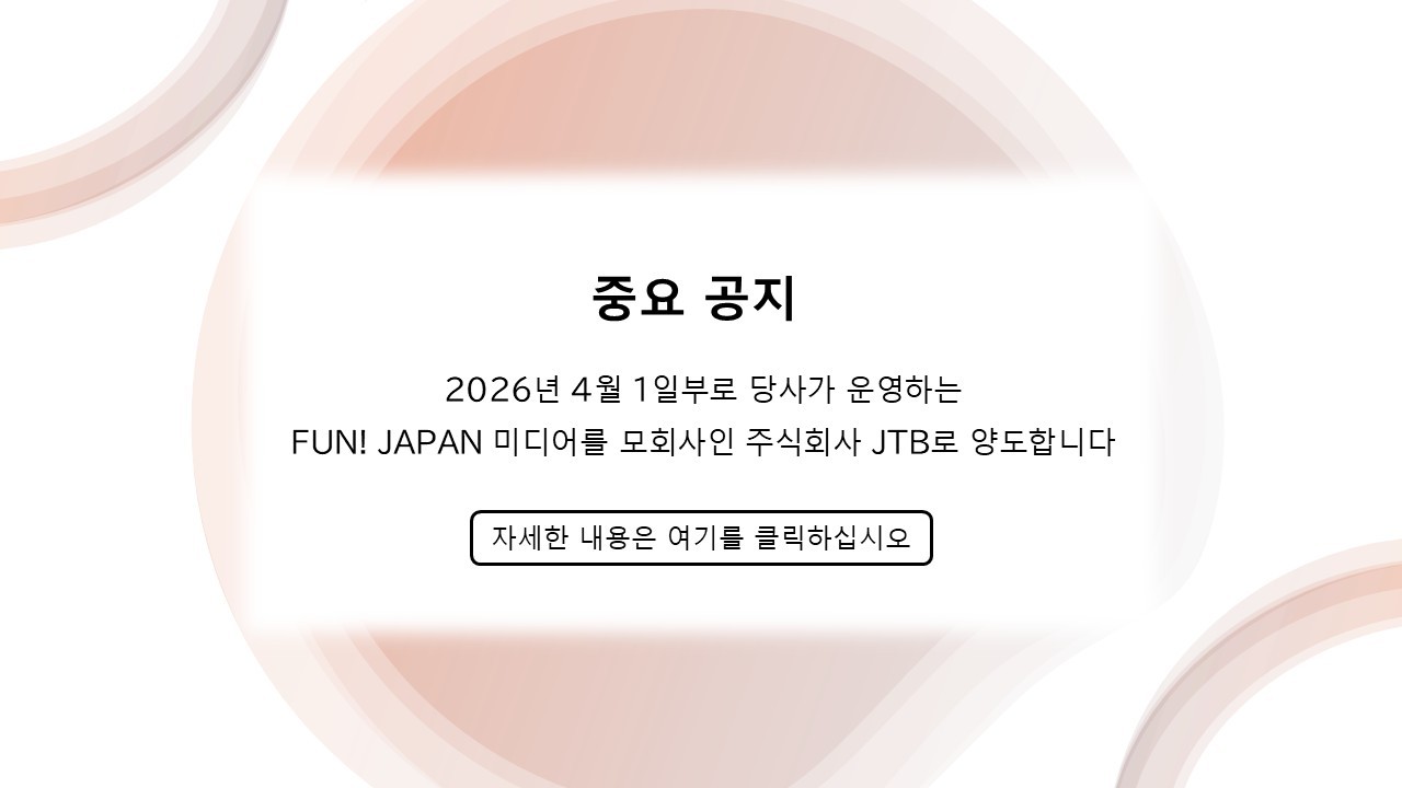 이번에, 더욱 향상된 서비스 제공과 회원 여러분의 만족도 제고를 위해, 저희가 운영하고 있는 FUN! JAPAN 미디어를 2026년 4월 1일부로 모회사인 주식회사 JTB(※)에 사업 양도하게 되었습니다.