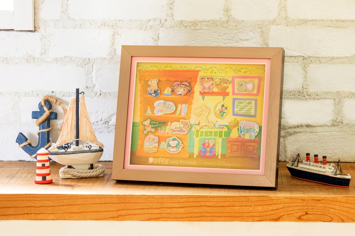 นี่คือเซ็ตเข็มกลัดที่มีผลงานศิลปะไอคอนิกจากอดีต การ์ดรองด้านหลังตกแต่งด้วยศิลปะที่ได้แรงบันดาลใจจากห้องของ Duffy ให้คุณย้อนความทรงจำในสวนสนุกได้ทุกเมื่อด้วยการตั้งโชว์ในห้องของคุณเอง