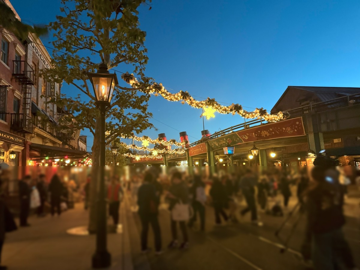這次採訪中,特別推薦的是有巨大聖誕樹的美國海濱周邊。重現20世紀初紐約的區域,充滿大都會氣息的華麗聖誕裝飾點綴著街道。最適合拍照的時段,是魔幻時刻的天空與夜景對比最美的日落前一小時。