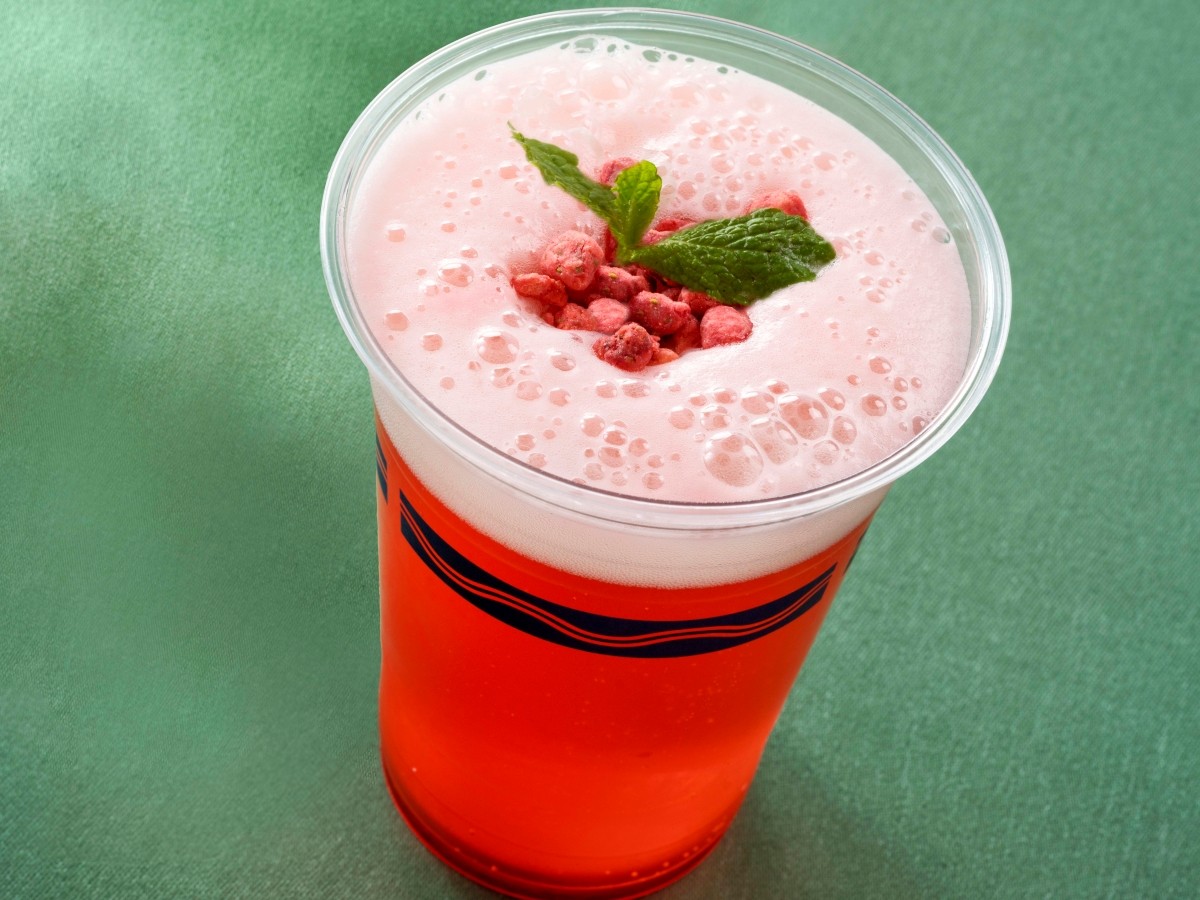 這是一款帶有華麗草莓香氣的啤酒雞尾酒。加入凍乾草莓果粒和薄荷葉,看起來就像聖誕紅果實般可愛。