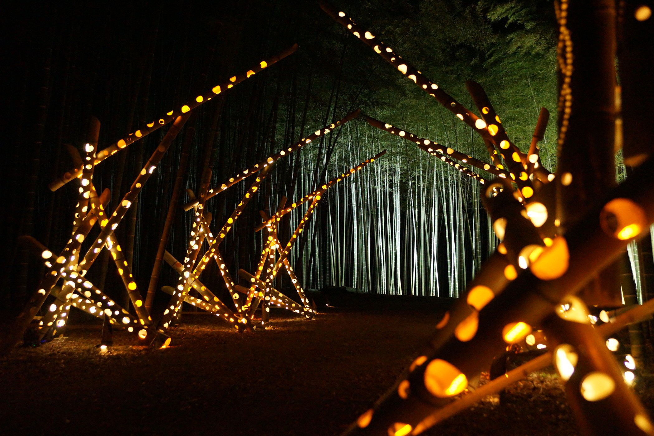 擁有日本最大面積的竹林。走進一望無際的竹林,遠離都市喧囂,在寧靜的竹林中輕鬆漫步。此外,還有隨季節舉辦的採收體驗、使用竹器品嚐抹茶,以及竹工藝製作體驗等多項活動。
