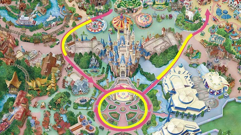 在灰姑娘城堡旁邊(從正面看向右側)也出現了一個很適合拍照打卡的景點。仔細一看,您可以和畫中的米妮一起比出愛心手勢,記得一定要試試看喔!