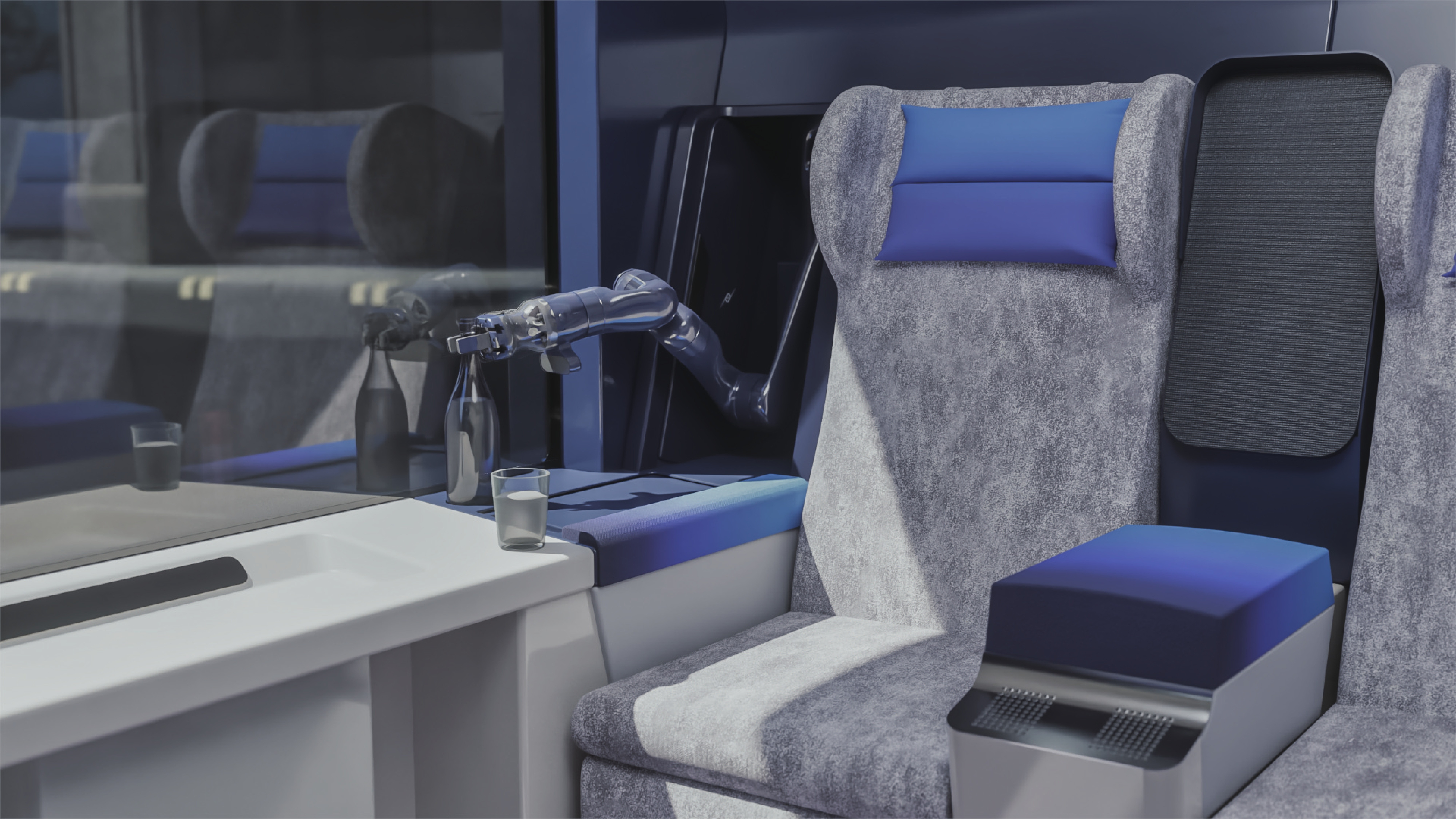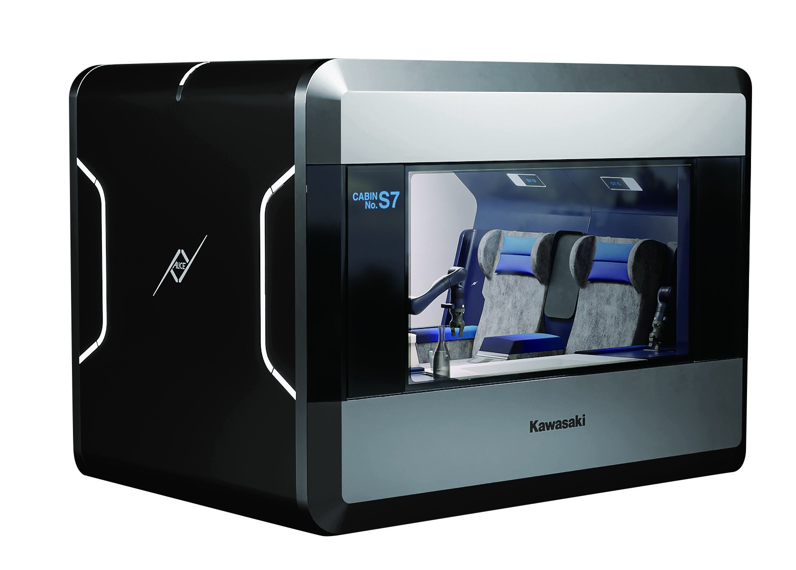 這套系統會讓專用艙自動接駁各種交通工具,包括以氫能運作的車輛(ALICE Car)、電車(ALICE Rail)、船舶(ALICE Ship)以及飛機(ALICE Aircraft)。專用艙內就像是「會移動的客廳」,若拆下椅子,輪椅使用者也能輕鬆使用。透過語音操作的「專屬服務功能」搭配機械手臂,還可提供倒飲料、協助換衣等細緻服務。