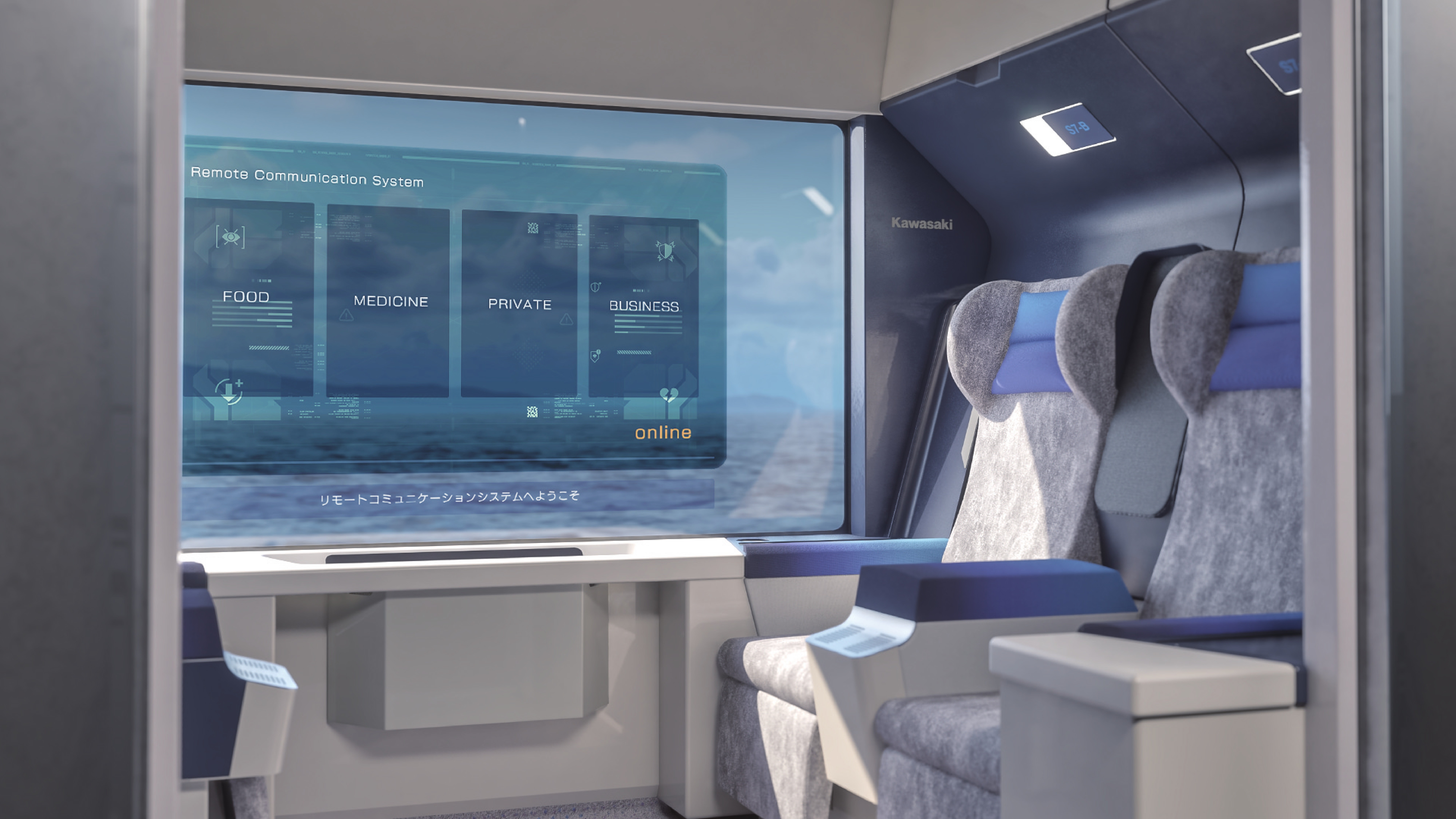 此外,透過牆面半透明的玻璃螢幕的「遠端通訊系統」,乘客既能悠閒欣賞車窗風景,更能觀看影片或進行遠端會議。無論是私人生活或商務場合,皆能滿足各種情境需求。語音指示也會同步顯示文字,讓聽力不便者也能安心使用。