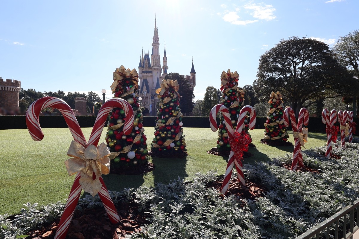 Khám phá các trang trí trong công viên. Cây thông khổng lồ ở World Bazaar & Trang trí mới trước Lâu đài Cinderella