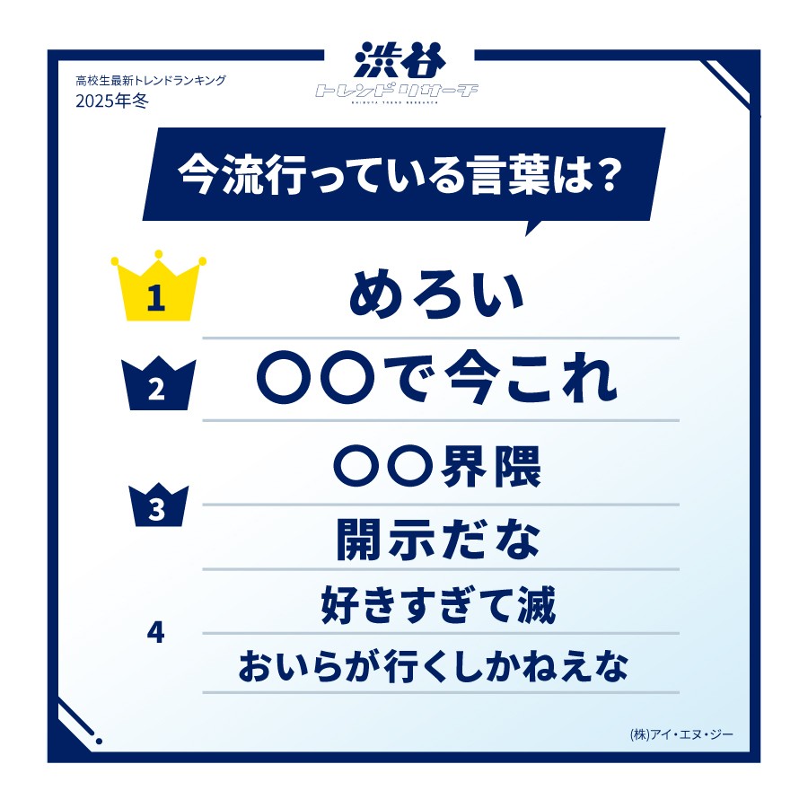 Một cuộc khảo sát nhắm vào các nam nữ sinh trung học nhạy bén với xu hướng tại Nhật Bản đã được thực hiện bởi Công ty ING, một công ty chuyên về hỗ trợ marketing và quảng bá cho giới trẻ trong hơn 30 năm, và kết quả đã được công bố với tên gọi “Xu hướng mùa đông mới nhất năm 2025”.