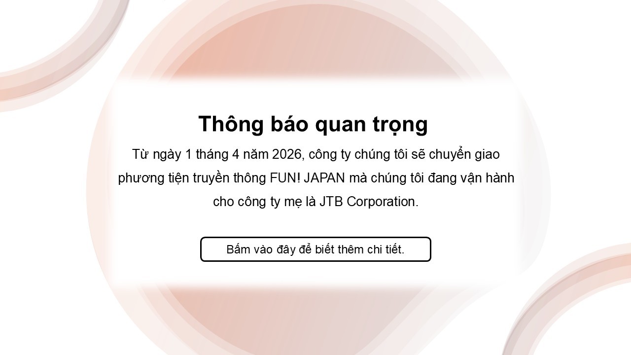 Nhằm tiếp tục nâng cao chất lượng dịch vụ và gia tăng mức độ hài lòng của hội viên, chúng tôi xin trân trọng thông báo: kể từ ngày 01/04/2026, hoạt động kinh doanh của FUN! JAPAN Media do công ty chúng tôi vận hành sẽ được chuyển nhượng cho công ty mẹ là Công ty cổ phần JTB.