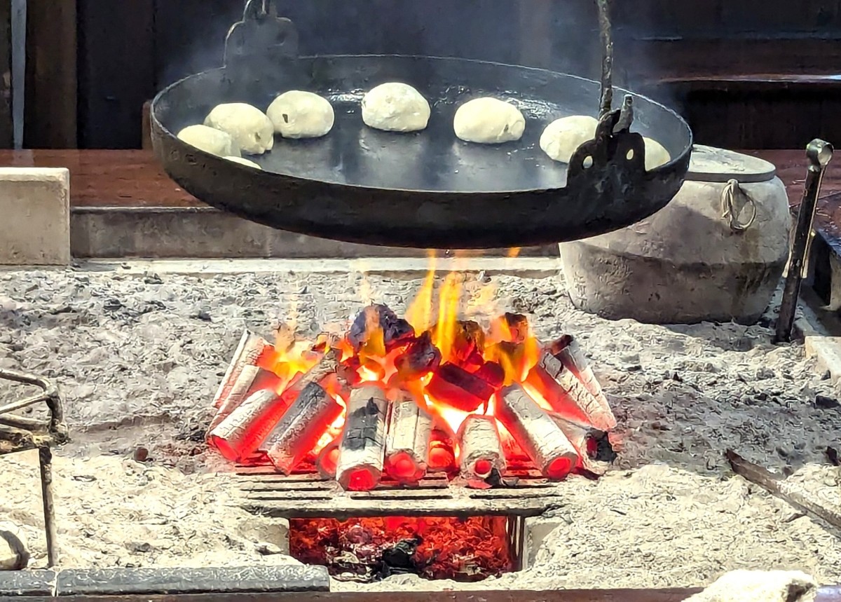 Oyaki là món ăn truyền thống của tỉnh Nagano, được làm từ bột mì với lớp vỏ dẻo dai, bên trong là nhân rau củ hoặc đậu đỏ, sau đó được nướng lên. Tại "Ogawa no Sho Daimon-ten", bạn có thể ngồi quanh lò irori (lò sưởi truyền thống với sàn được khoét hình vuông) và thưởng thức những chiếc oyaki vừa mới nướng xong. Ngoài ra, trải nghiệm tự tay nướng oyaki cũng sẽ là một kỷ niệm đáng nhớ trong chuyến đi của bạn.